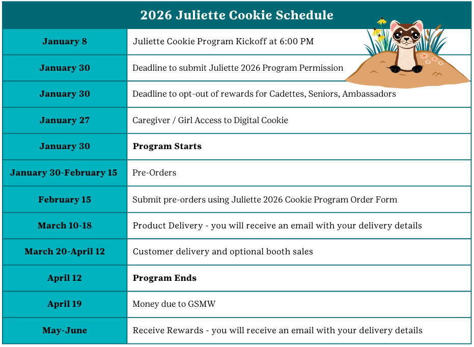 The Girl Scout Cookie Program is one of two council sponsored programs that combine educational activities with money earning opportunities.